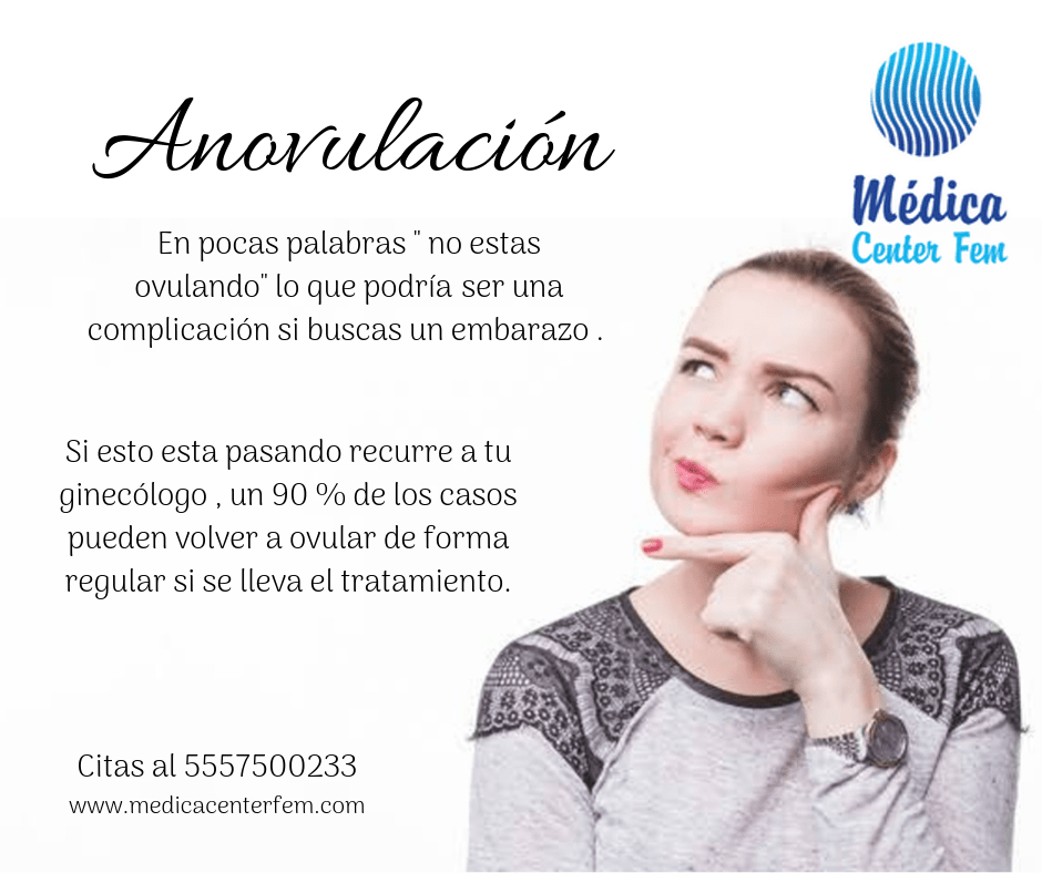 - Anovulación : Llamamos un ciclo anovular cuando los ovaros no soltaron el ovulo en pocas palabras » no estas ovulando», esto puede considerarse normal si tu estas llegando a la menopausia, pero si aun no tiempo podría ser causa de infertilidad. Si esto esta pasando recurre a tu ginecólogo , un 90 % de los casos pueden volver a ovular de forma regular si se lleva el tratamiento.