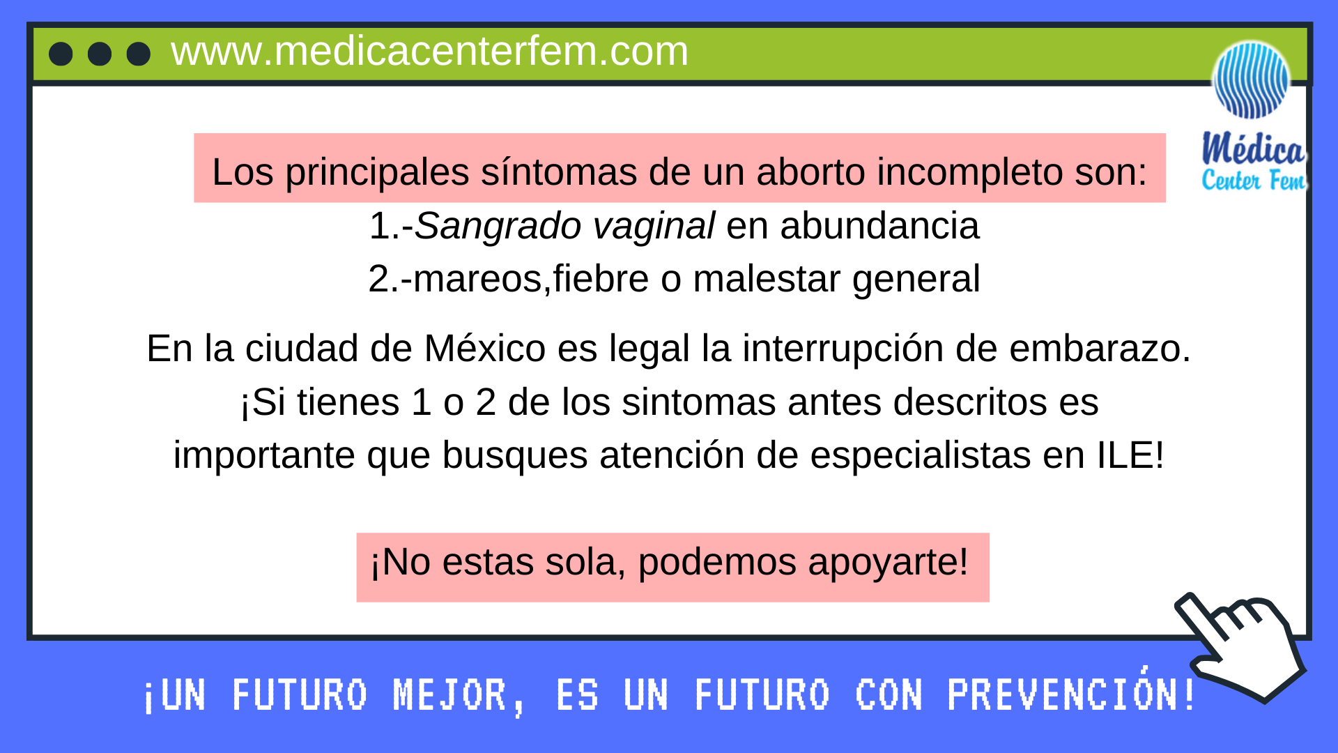 ¿Qué procedimiento se debe seguir si tengo un aborto incompleto? Lo primero que debes de hacer si tienes 2 o más síntomas que mencionamos es dirigirte con personal de salud calificado para tu atención, ya que si sufres de un aborto incompleto tendrán que realizar un procedimiento para retirar el producto que no se expulsó, pues de no retirarlo podría causarte molestias graves.