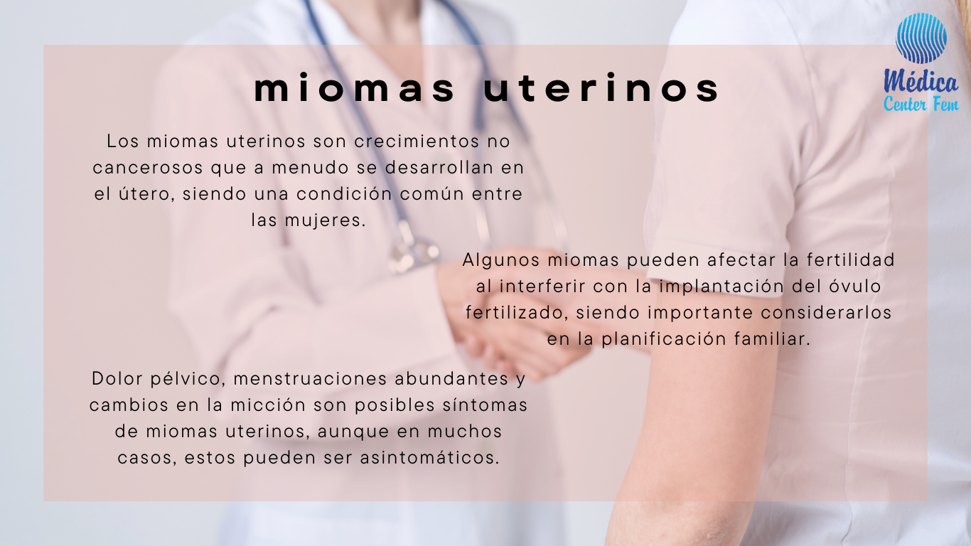 Entendiendo los miomas uterinos. Los miomas uterinos, también conocidos como fibromas uterinos o leiomiomas, son tumores no cancerosos que se desarrollan en el útero, específicamente en el tejido muscular del útero. Estos tumores pueden variar en tamaño, desde pequeños bultos apenas perceptibles hasta crecimientos que pueden distorsionar la forma del útero. Aunque se desconoce la causa exacta de los miomas uterinos, factores genéticos, hormonales y ambientales pueden desempeñar un papel en su desarrollo.