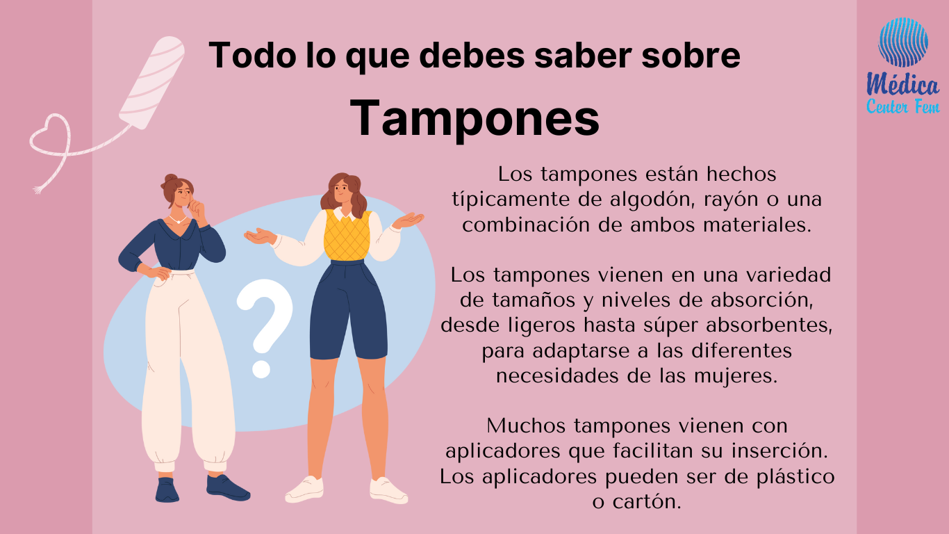 Todo lo que debes saber sobre tampones. Los tampones son productos de higiene femenina utilizados para la absorción del flujo menstrual durante el período menstrual. Son pequeños cilindros de algodón o materiales similares que se insertan en la vagina para absorber el flujo menstrual antes de que salga del cuerpo. Aunque los tampones son ampliamente utilizados y pueden ser una opción conveniente para muchas personas, hay ciertas cosas importantes que debes saber sobre su uso seguro y efectivo.