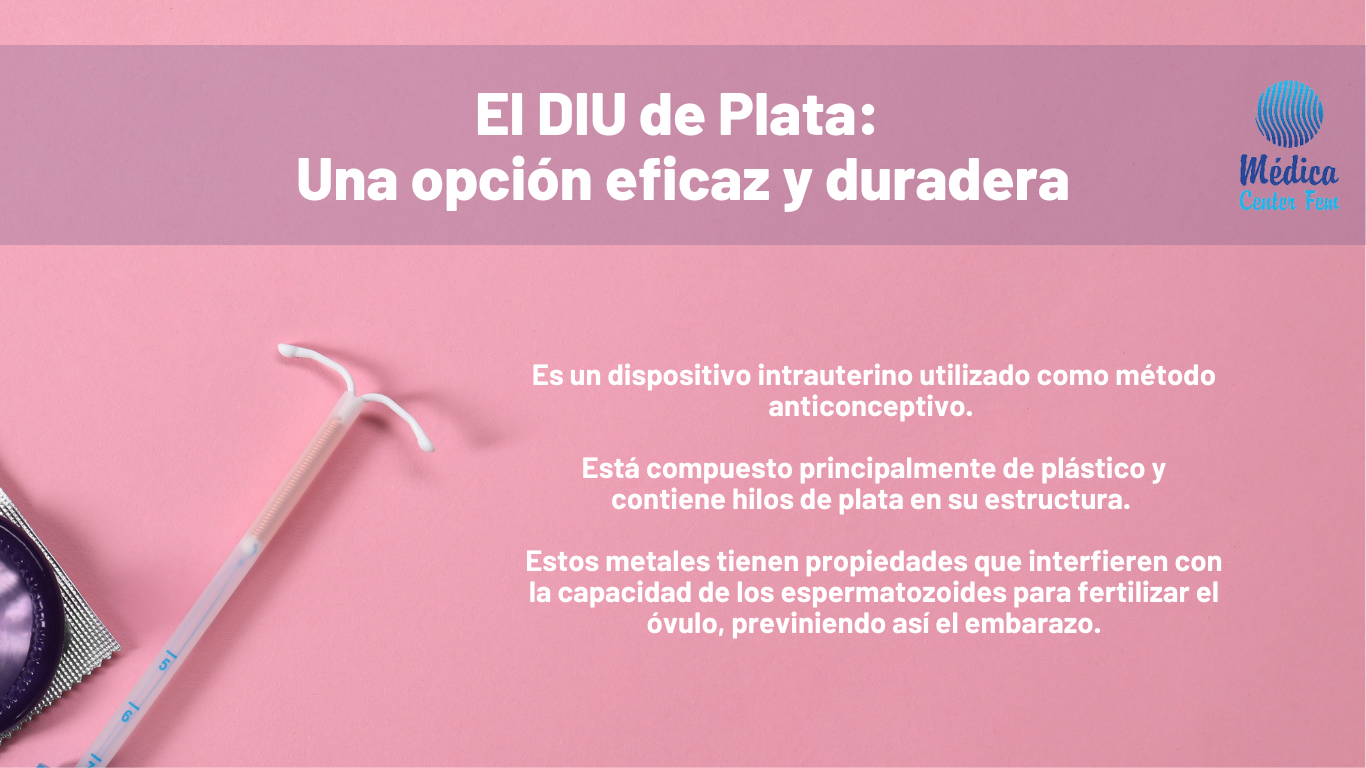 El DIU de plata es un tipo de dispositivo intrauterino que contiene un pequeño componente de plata en su estructura. Aunque los DIU convencionales suelen estar hechos de plástico y liberan progestina o cobre, el DIU de plata aprovecha las propiedades antimicrobianas de la plata para proporcionar una protección adicional contra infecciones del tracto genital.